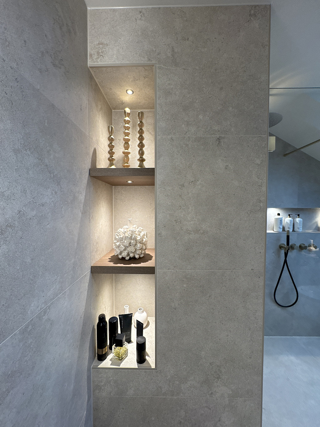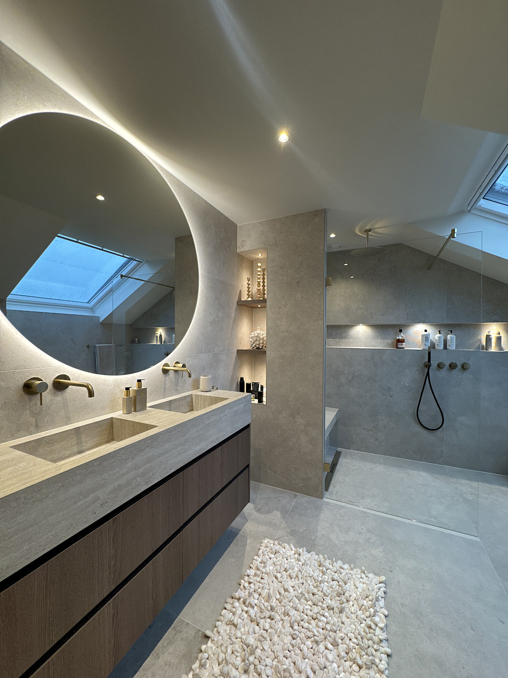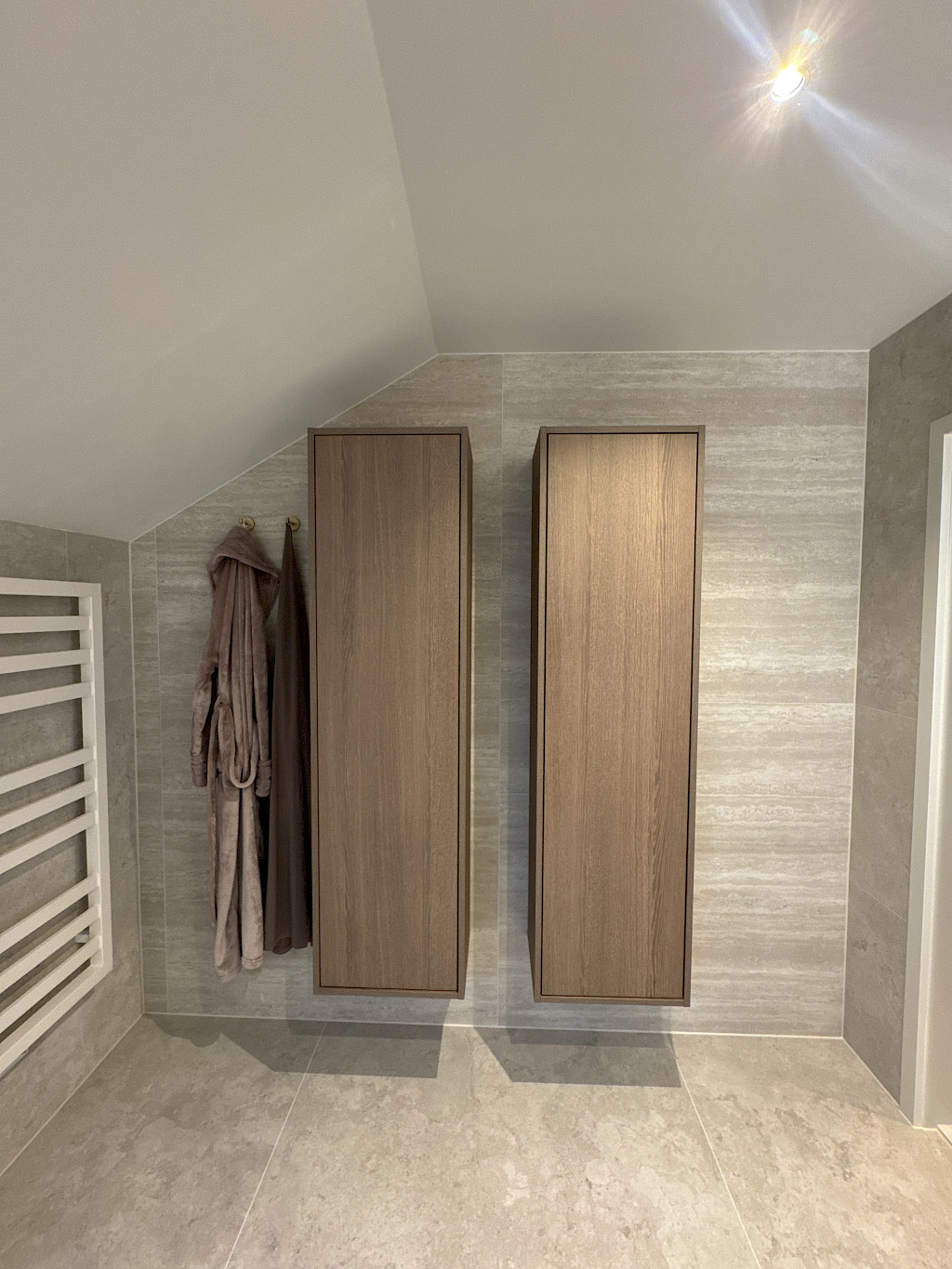 Door de hoogwaardige materialen en de doordachte combinatie van tinten en accenten ontstaat een badkamer die zowel rustgevend als luxueus aanvoelt.