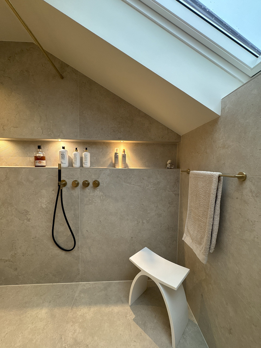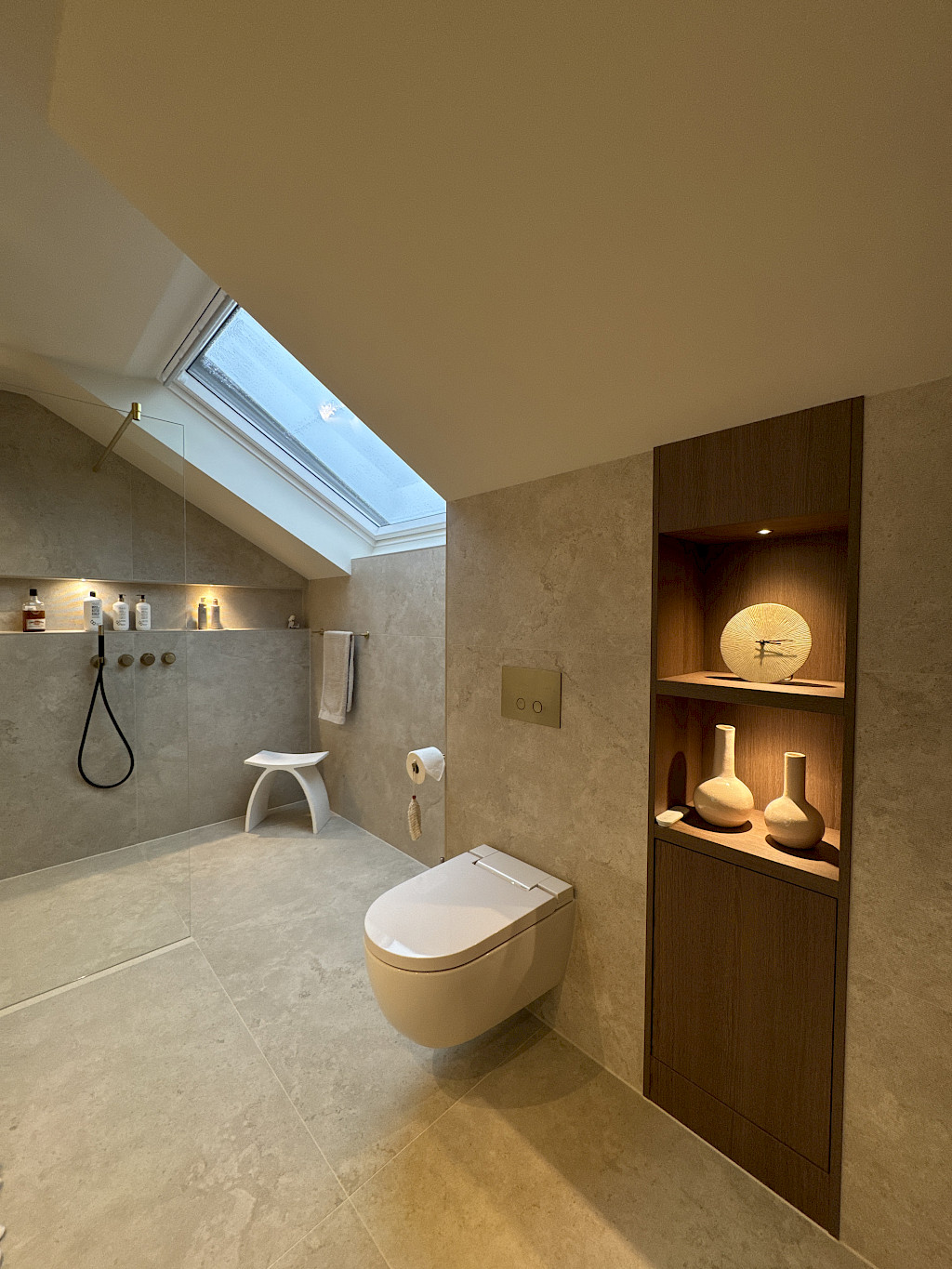 We zijn verheugd om onze nieuwste badkameroplevering met je te delen. Deze badkamer straalt luxe en elegantie uit, met groot formaat travertin tegels die zorgen voor een tijdloze en stijlvolle uitstraling.