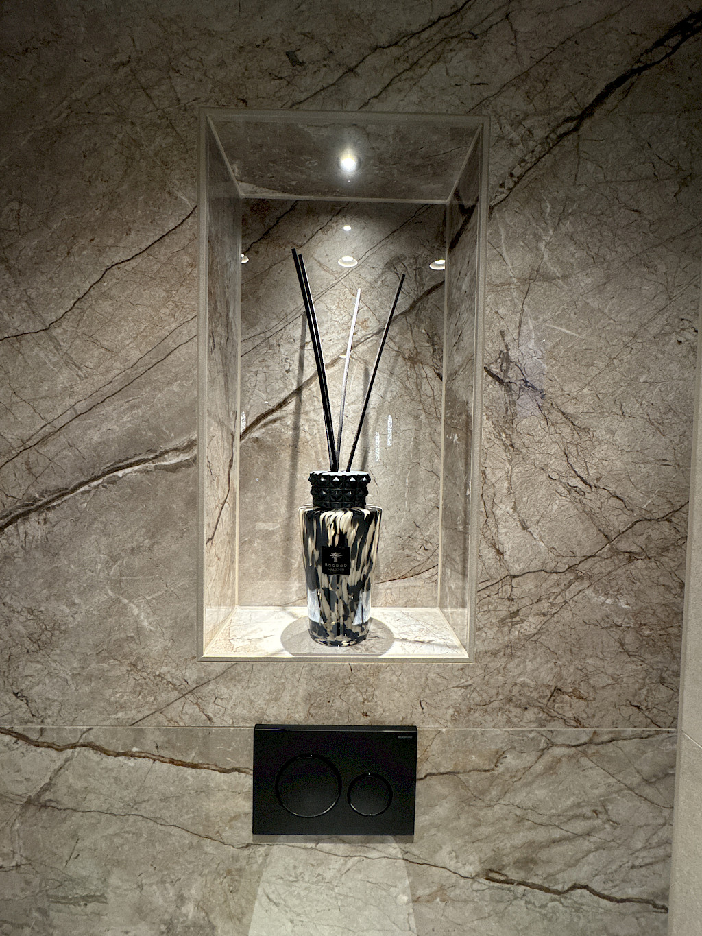 Door de combinatie van luxe materialen, rustige kleuren en maatwerk ontstaat een badkamer die niet alleen functioneel is, maar ook een plek waar comfort en design samenkomen.