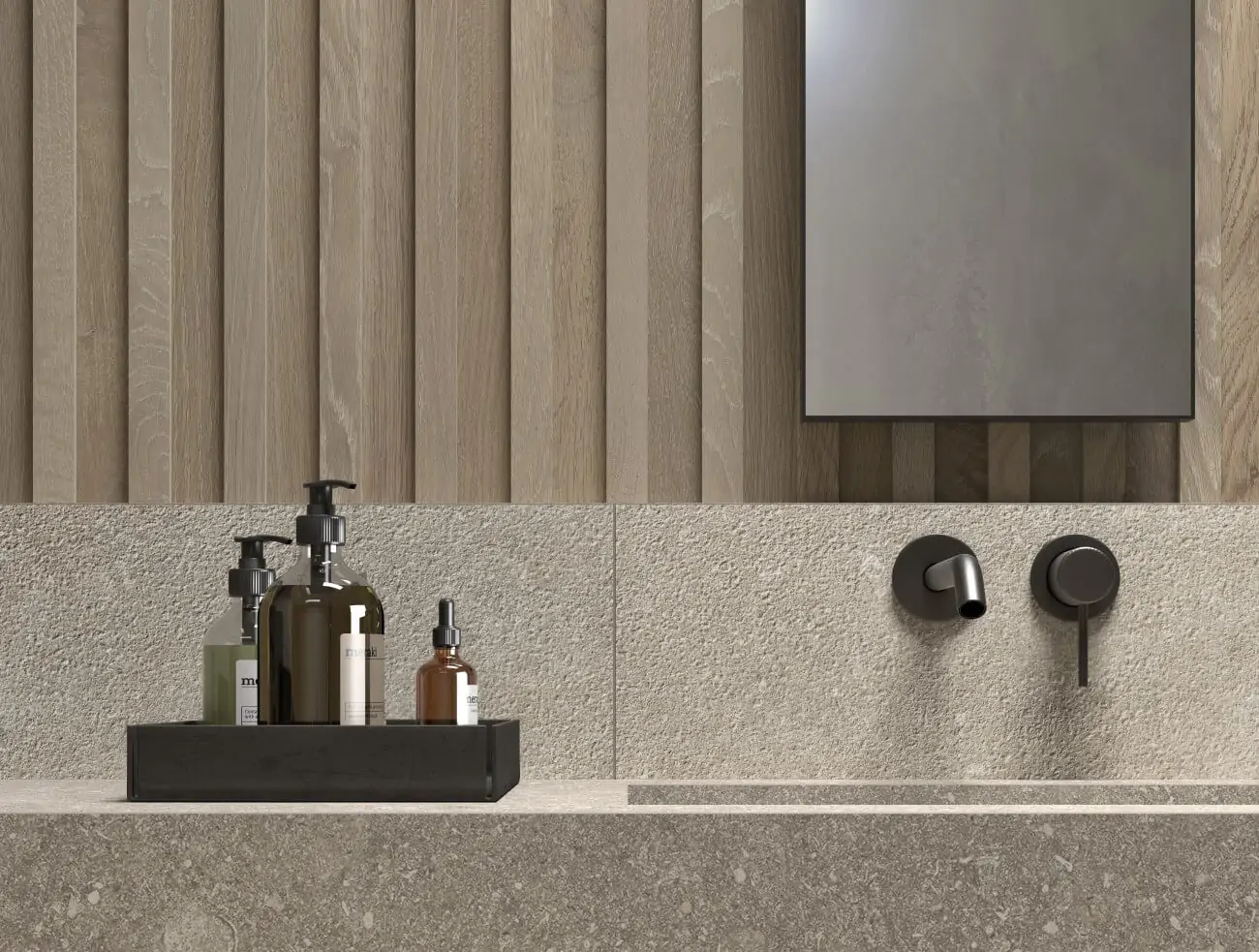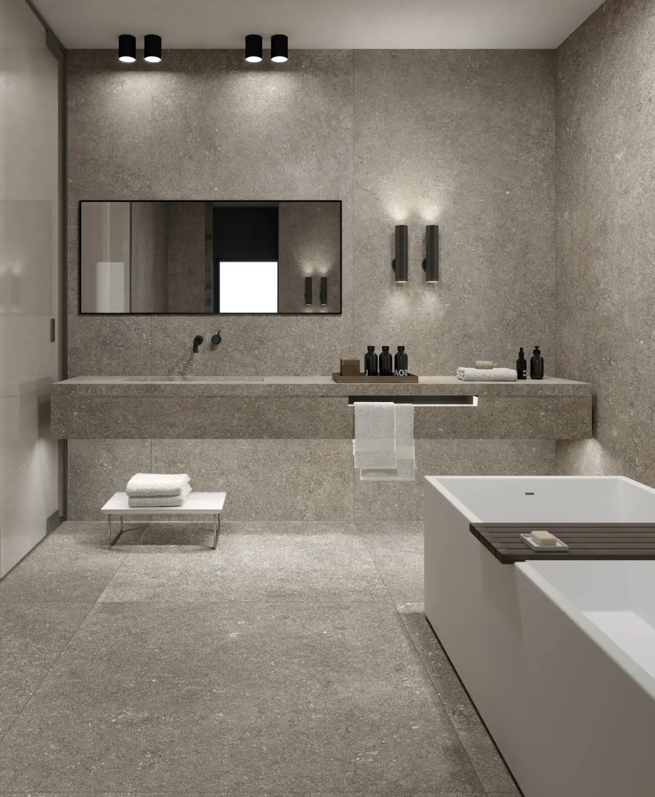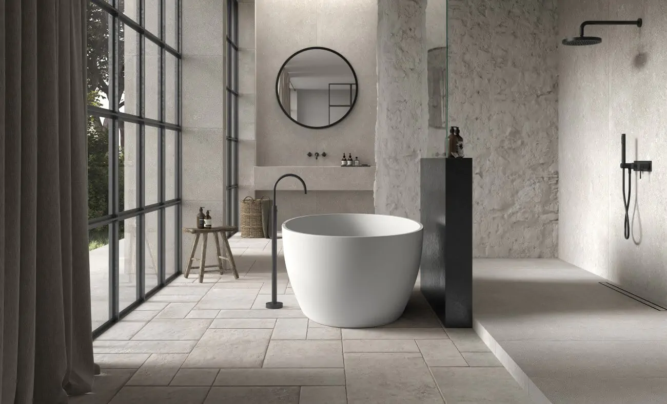Kronos uit Italie heeft als specialisatie vloertegels van de meest gelijkende Belgisch Hardsteen imitaties, gekoppeld aan hout en metallook keramiek.