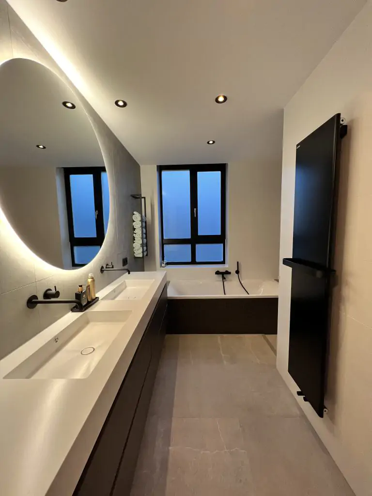 Wilt u ook een moderne badkamer creëren met mozaïek-, grijze tegels en zwarte kranen? Neem dan contact op met Kirry en laat onze professionals u adviseren en begeleiden bij het realiseren van uw droom badkamer.